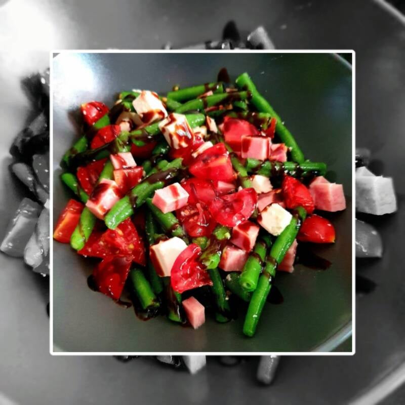 Schep een mooie hoeveelheid in een fraai diep bord en doe dan naar smaak de balsamico crème er overheen.