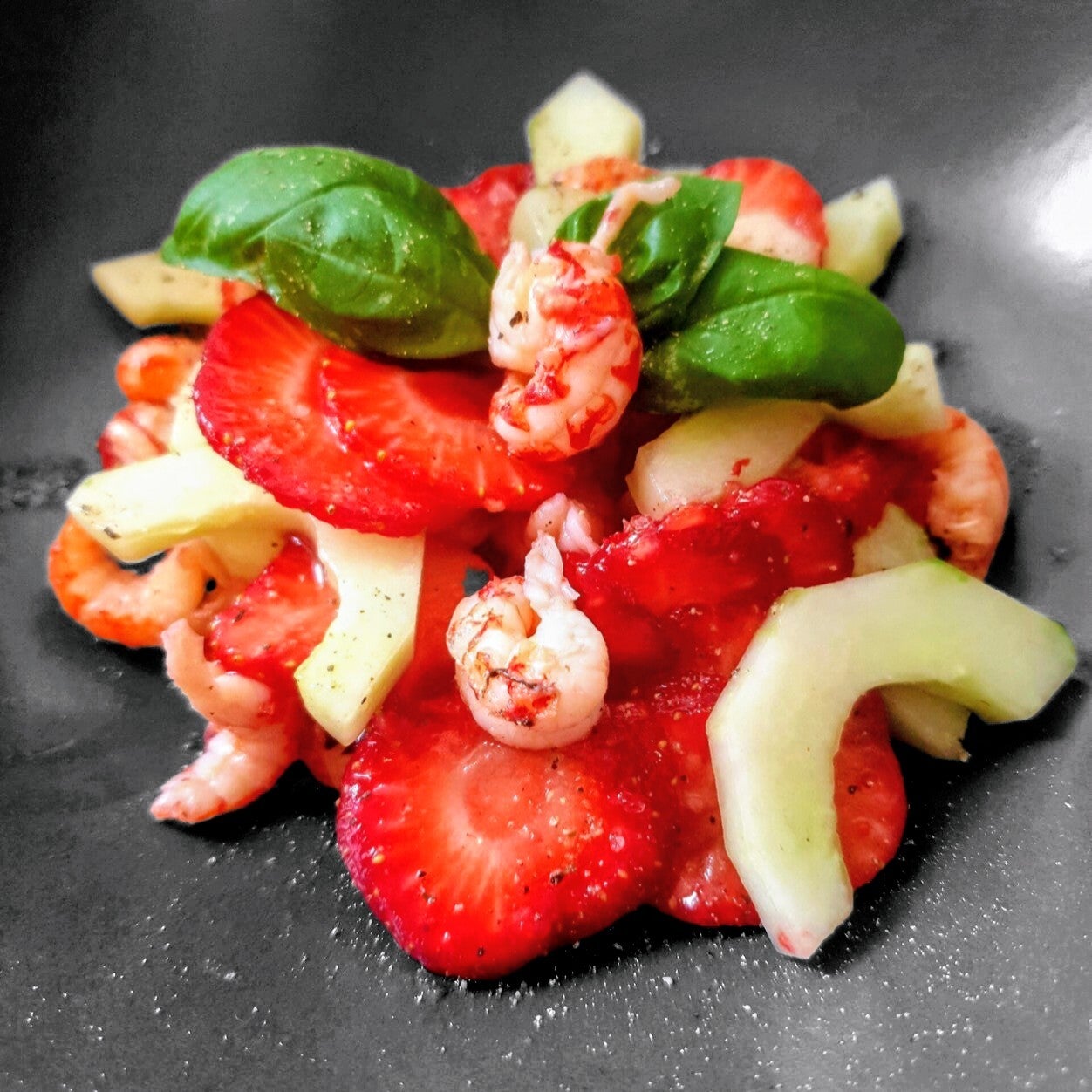 Vervolgens de vruchtenazijn (wederom naar smaak) en mix een laatste keer.